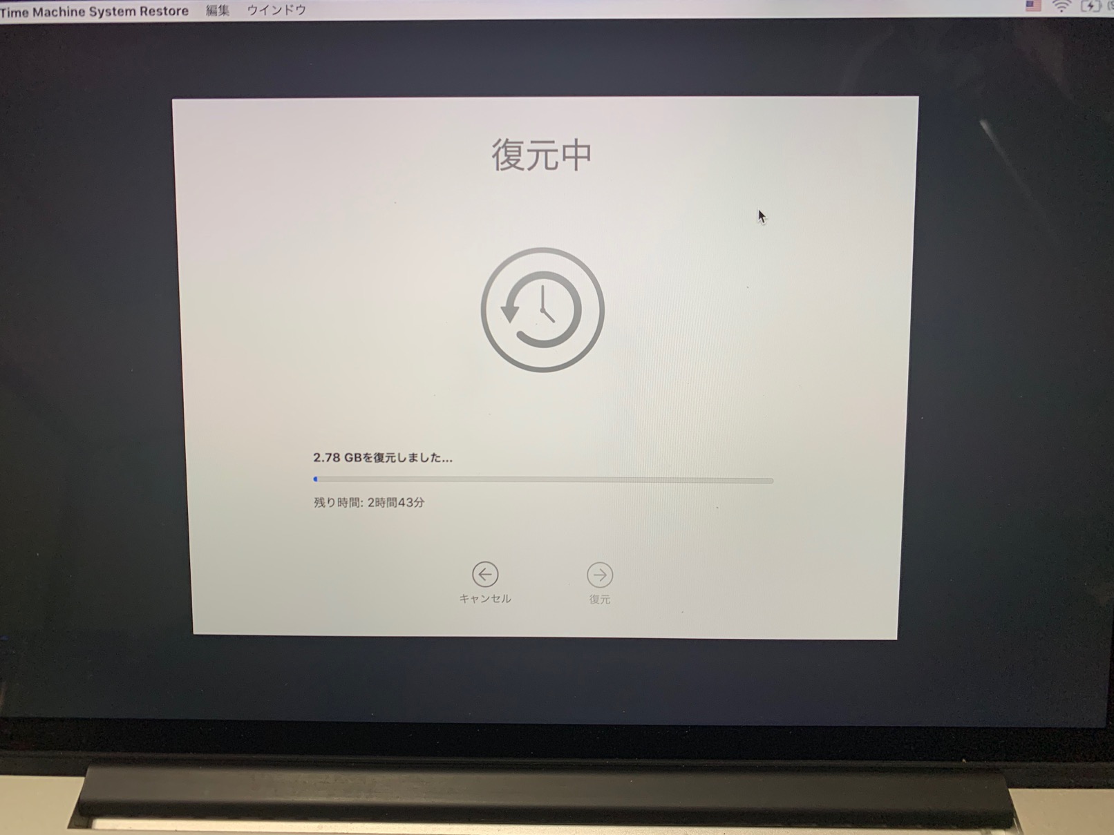自宅に帰って、早速TimeMachineでデータのリカバリをかけて使えるようにしました。