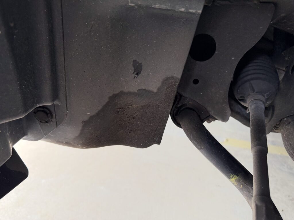 これは5月、タイヤ交換時に撮影した写真です。エンジンルームを上から覗いてもなんか濡れてる感じは分かりましたし、タイヤハウス側からもこんな感じで確認できました。