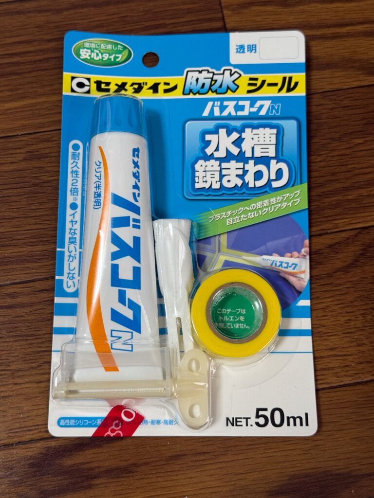 そんなときは「バスコーク」です。実は前車で社外品のコンビレンズを取り付けていた時、DIYでコーキングしたことがあったので、それ以来2度目です。コンビレンズ関連の修理ではよくあるケースかなという気はします。