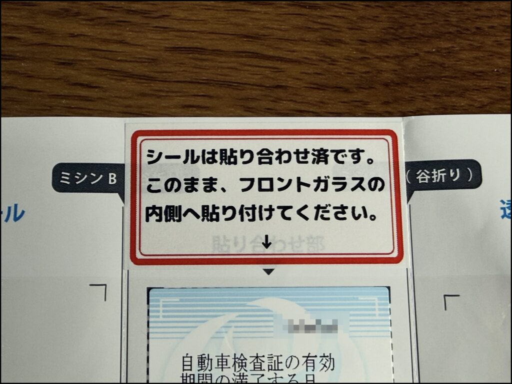 車検証シールを車に貼ろうと思ったのですが、なんだかシールの台紙が傷んでおり、なんだか雑だなぁと思ったら、なんと既にシールが貼り合わせ済みで、そのままフロントガラスに貼り付けるだけでOKになっていました。