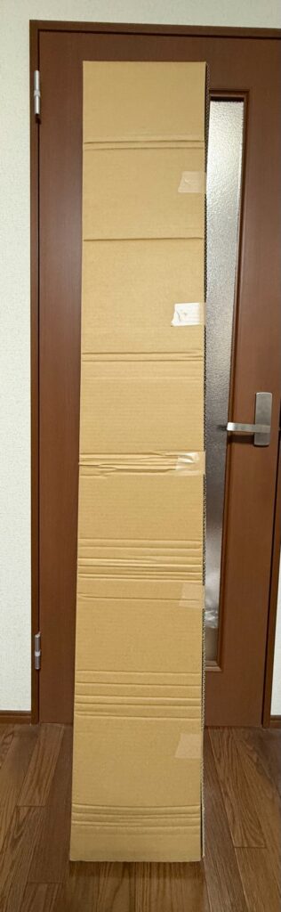 結構な大きさの段ボールになります。中で板が動かないよう、上下の隙間に模造紙や新聞紙を詰めてあげる必要があるのですが、これ事前に準備しておかないと意外に入手に苦労します。今回は梱包のために新聞を買ってきたのですが、最近は新聞もページ数が減っていて梱包に使おうと思うとカサが全然足りません。Amazonなどの梱包材として入っている模造紙等をある程度保存しておくとかしたほうが良かったなと反省です。