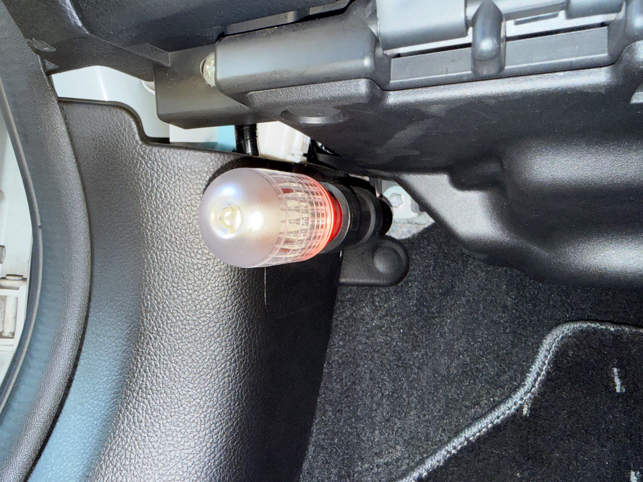 ちゃんと助手席足元の、発煙筒ホルダーに収めることができました。これで安心です。シンプルに発煙筒よりも信頼性が高いLED非常信号灯は結構有益だなと思いました。
