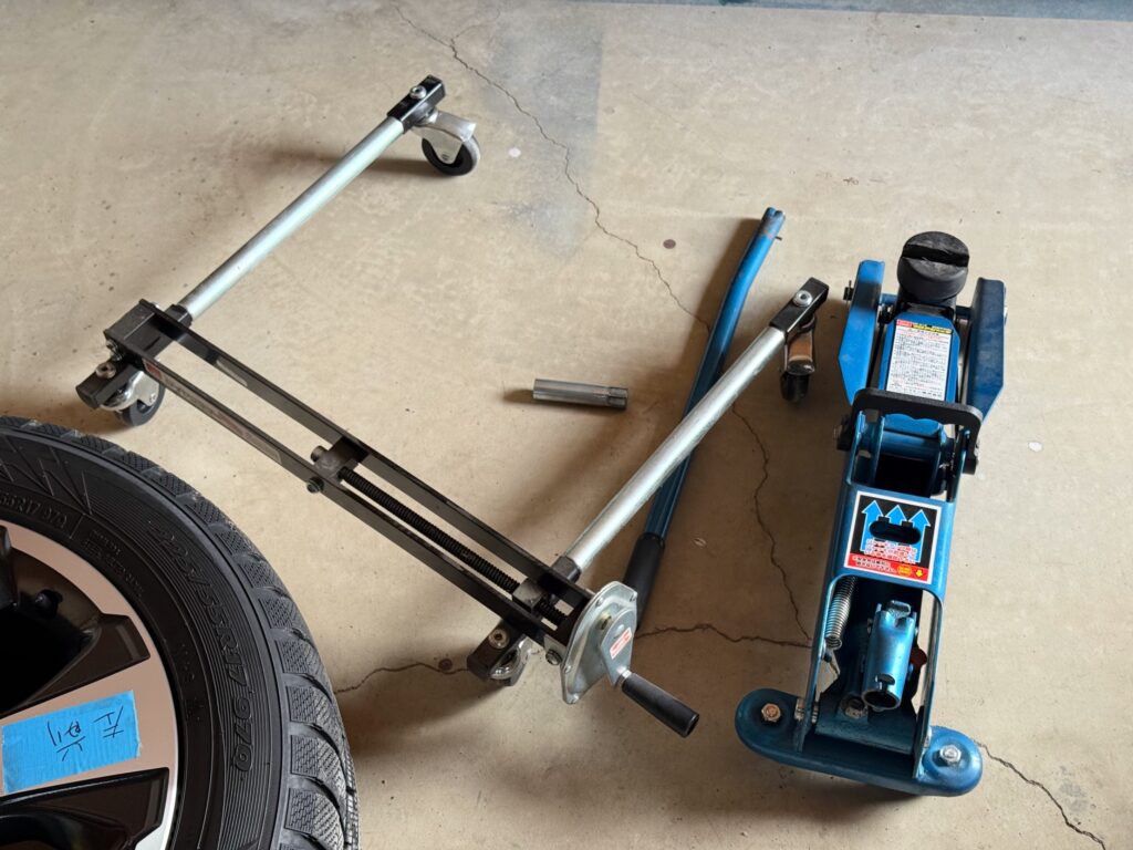 昨年導入したエマーソンのタイヤリフター「クルピタ丸」は便利です。今回も楽ちんでした。