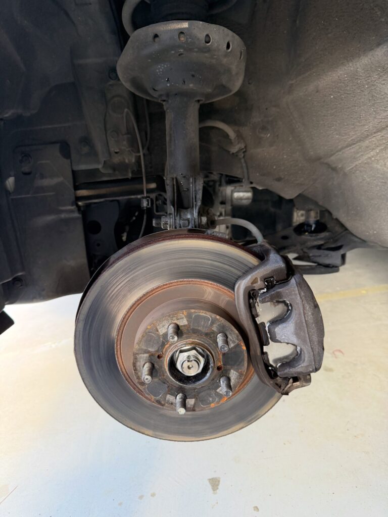 左リア。ここが一番盤面のサビが気になるところなんですが、特にブレーキの効きが悪かったり、異音が出たりといった症状は無いので大丈夫なんでしょう。