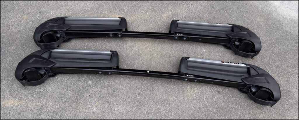 毎度、取付時に屋根にキャリアをぶつけそうになってヒヤヒヤするのですが、上記写真の状態のままで取り付けるのが一番安全だと、あとで気づいたので、次からはこの形のままで取り回そうと思います。