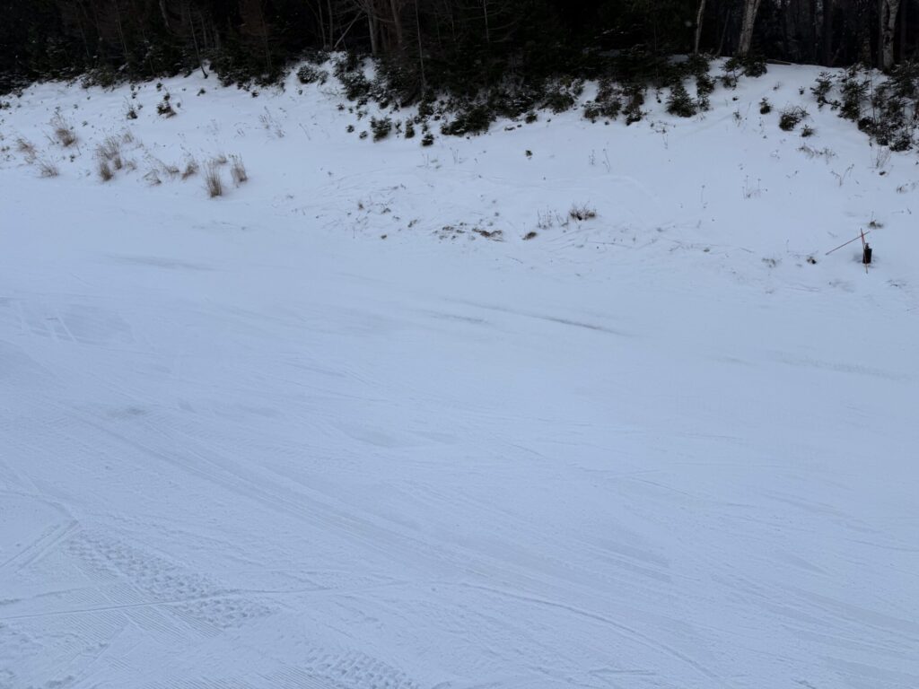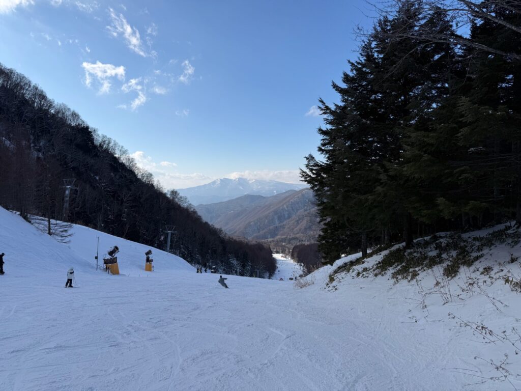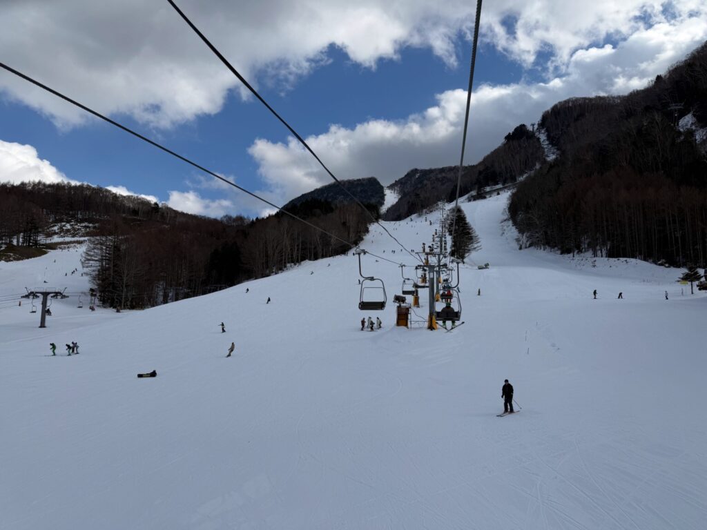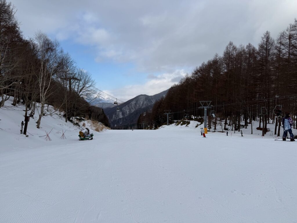 下部、イエローコース。1回しか滑りませんでしたが、前回よりアイスバーンは状況緩和されていたようにも感じます。降雪が進んだのかもしれません。それでもリフト下など見ると雪が薄いのが分かります。
