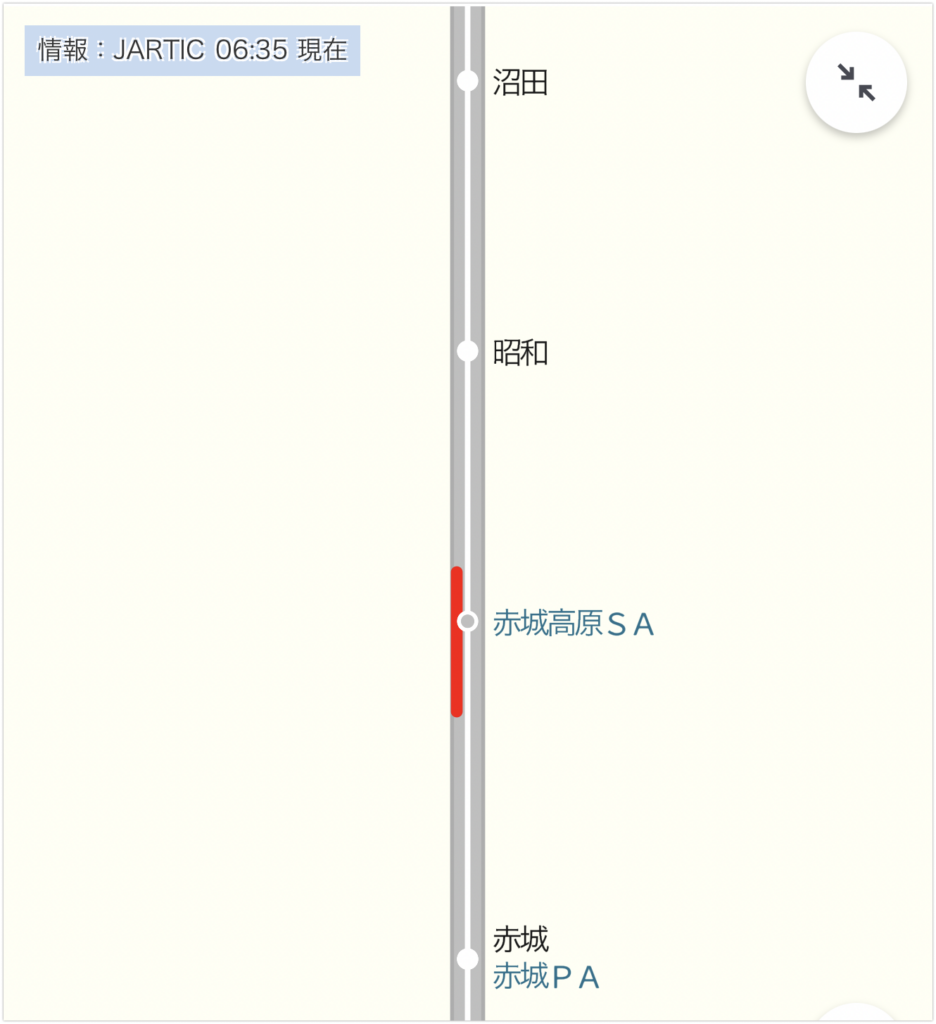 しかも通過時間が20分と出ました。もう赤城インターを超えているので回避のしようもなく、そのまま突っ込むしか無かったのですが、当初はもしや事故渋滞か?と思っていました。こうなると、なんで渋滞しているのかのほうが気になります。