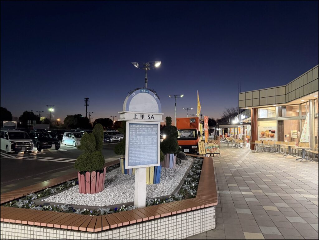 上里SAで休憩です。片品方面に滑りに行くと、ちょうどこの辺が中間地点になります。駐車場も空いていました。