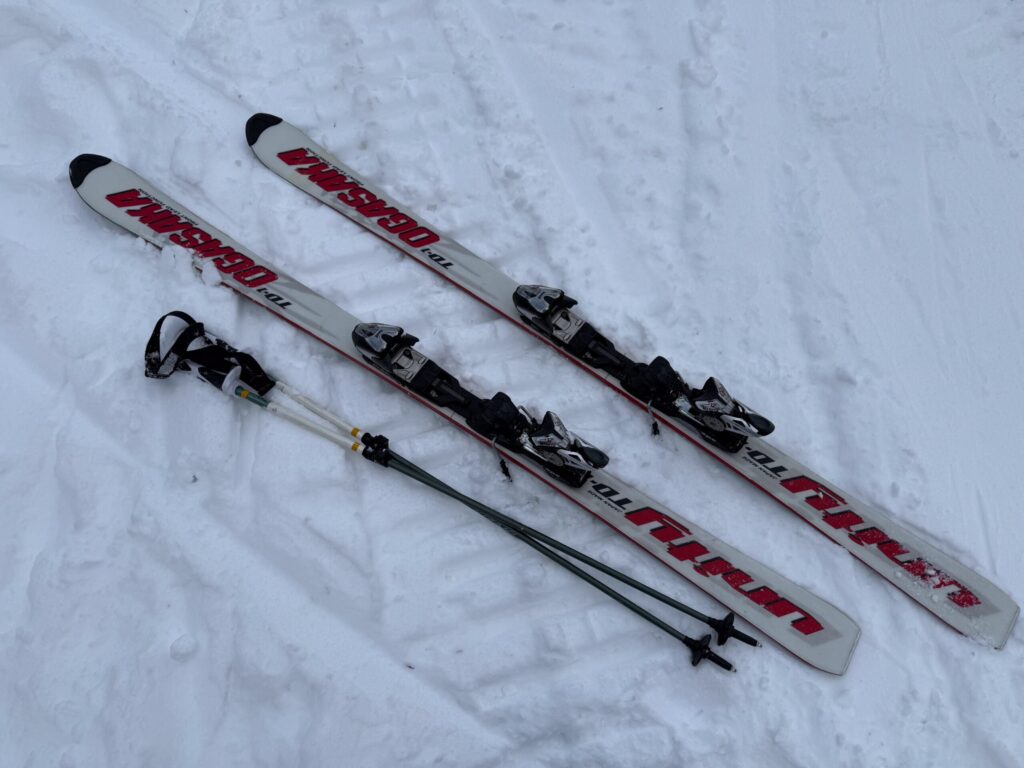 とはいえ、天然雪メインのかたしな高原、結構雪が薄いことが多いので、今回もあまり期待せず、古い板とメインの板と、2枚持ち込んで滑りに行くことにしました。そろそろメインのS9iで滑りたいのですが、今シーズンはどこもまだ雪が薄いので、古い板でしか滑っていません。今回も、直近で降雪はあったものの、不安があるので両方準備して向かうことにしました。