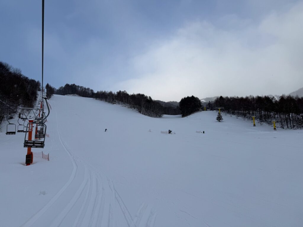 びっくりしたんですが、上級コース、もくせいコースが開いていて、滑っている人が見えたんですよね。まさかここが開いているとは思わなかったので、本当に驚きました。