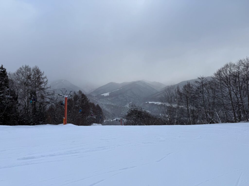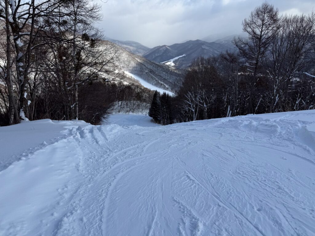 この日は雪雲が出ていて、パラパラと雪が降り続くコンディションで、景色はあまり楽しめませんでした。その分、雪質は良かったです。