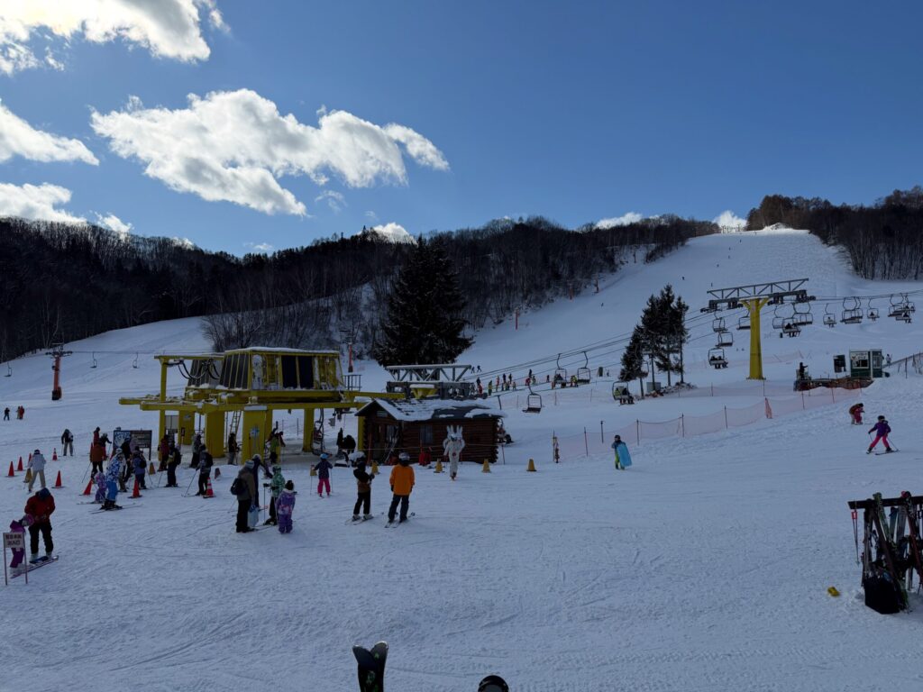 センターハウス付近の混雑具合はこれくらい。正月休み最終日の日曜日ということで、家族連れが多く賑わっていました。それでもリフト待ちが伸びるような込み方をしないのがかたしな高原スキー場の良いところだと思います。