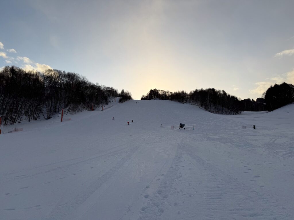 で、早速滑りに行ってみました。雪質は良くて滑りやすくて思った以上に楽しかったです。