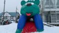 夜になってライトアップされたコブ。ピラミッドのように山ができていますが、カチコチの氷の山です。