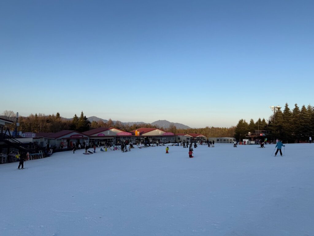 思ったより駐車場がいっぱいで、混雑していました。前回来た時は海外からの旅行客が多く見られた印象だったんですが、今回は普通に滑りに来ている人が多い印象でした。