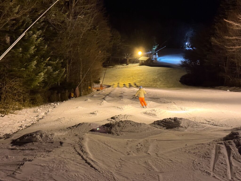 以上、チャレンジモーグルが滑れるようになったということで、ふじてんスノーリゾートナイターに突発的に行ってみた話でした。案の定、全面人口雪のカリカリのアイスバーンでしたが、楽しかったし、良い練習になったし、ふじてんナイターは良いなと改めて思いました。