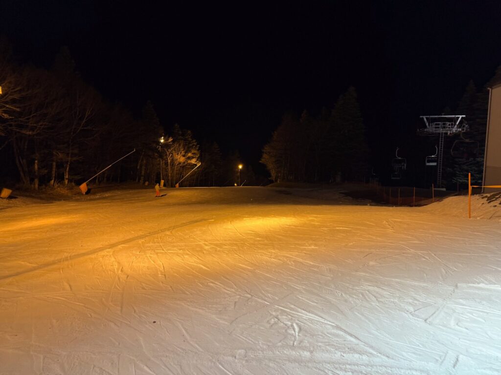21時近くのリフト降り場付近の様子ですが、この日はクローズまで滑っている人がたくさん居たのが印象的でした。トップシーズンの到来を感じる雰囲気でした。