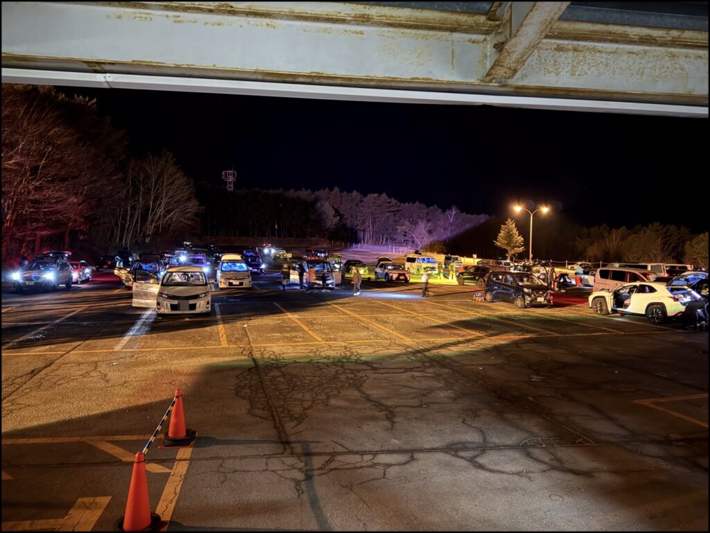 帰り際、これは21時過ぎの駐車場の様子ですが、正直あまりに人と車が多くて笑ってしまいました。こんなにゲレンデ好きがいるんだーって感動しました。