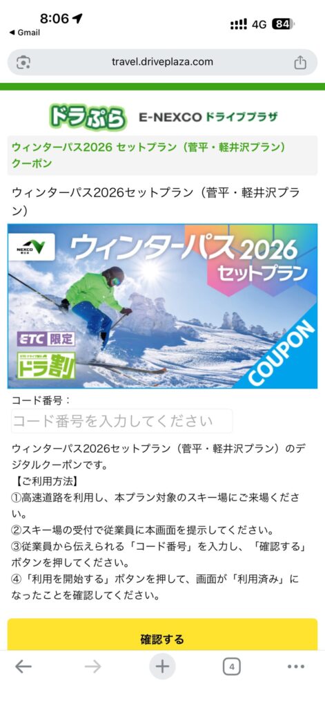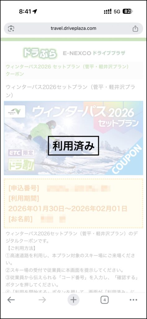今回はウィンターパスのセットプランでチケットを購入します。デジタルクーポンが発行されるので、これを使って窓口で手続きしました。