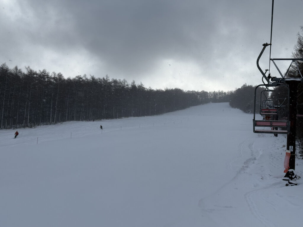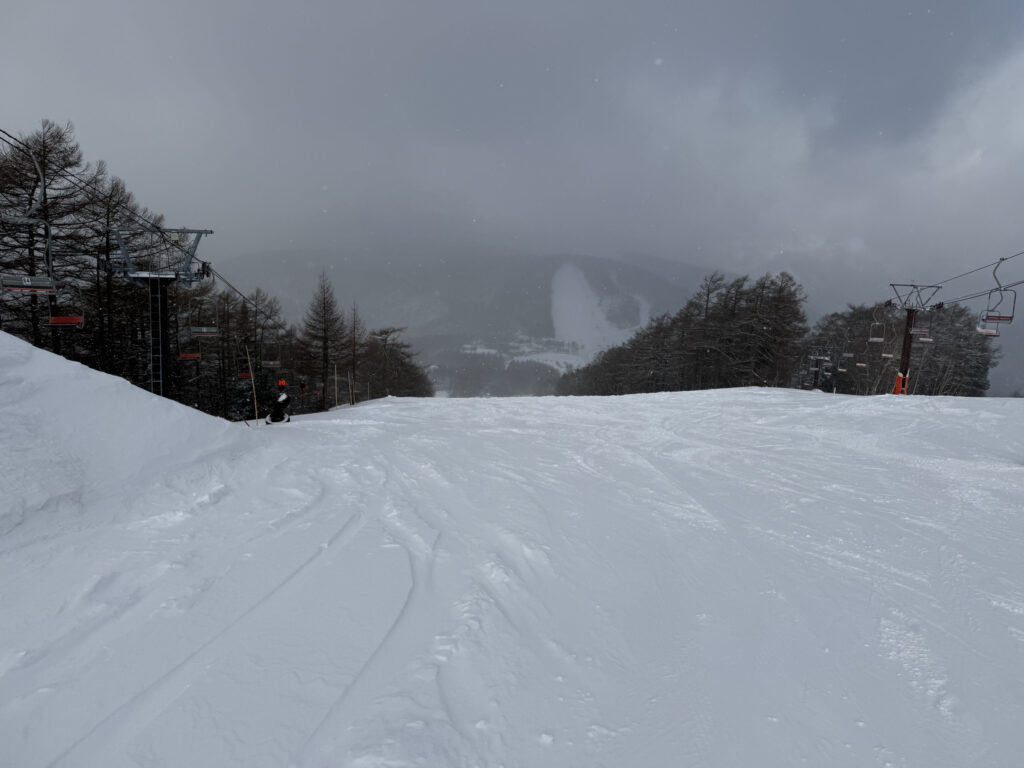 第1ゲレンデは気持ちよかったです。新雪が降っている時間が長く、湯の丸らしい雪質を堪能出来て良かったです。そしてやはり寒かった。防寒対策を考えないといかんなと再認識させられました。