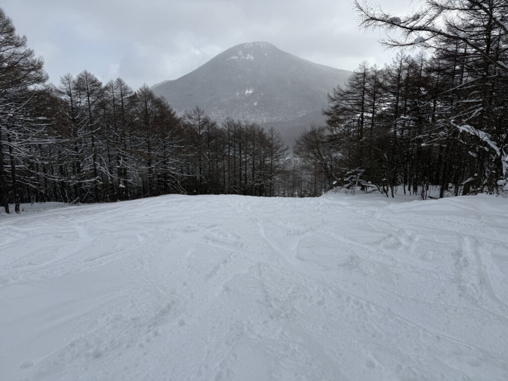 第4ゲレンデ。ここが開くと湯の丸も本番っていつも思っているコースです。結構新雪が深くて面白いコースになっていました。