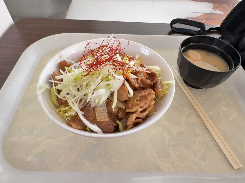 遅めの昼食にレストハウス「ファミリー」で焼肉丼を頂きました。ここ券売機もあるのですが、レジでキャッシュレス(QR/クレカ)も使えて便利です。自家製ラー油が置いてあってオススメされたのですが、今回はちょっとだけかけて頂きました。もっとガッツリかけても良かったかなと思いました。