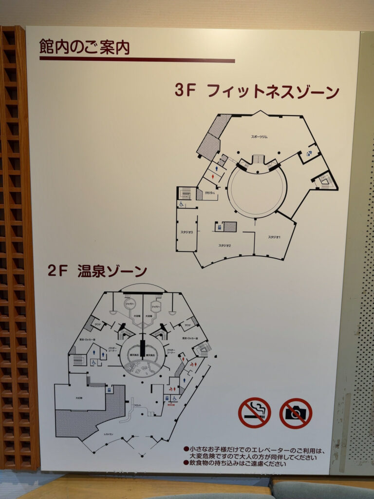 館内は比較的綺麗です。フィットネスクラブも併設されています。温浴施設自体は広くも狭くもなく、そこそこって印象でした。泉質はこの地域では見たことある泉質だったように感じます。湯船はそんなに広い感じはしませんでしたが、洗い場の数が多いのと、脱衣所にカゴが用意されているのは良かったです。
