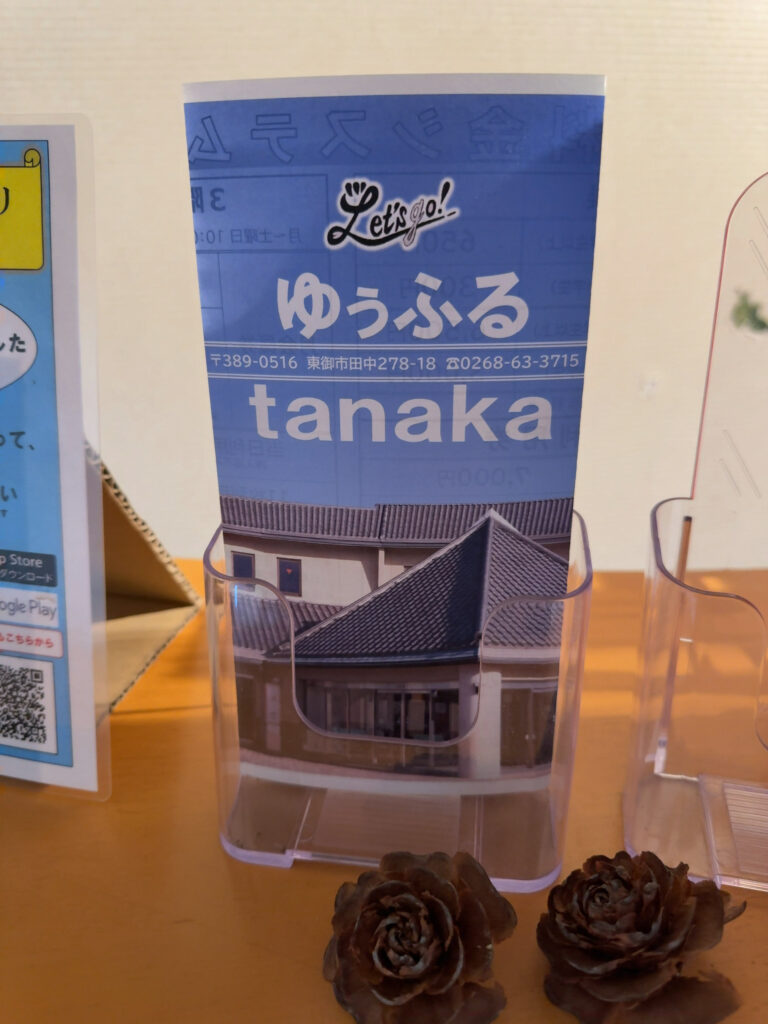 建物の写真が無いですが…ここ田中駅の近くの駐車場直結温泉施設なんですよね。なので車で立体駐車場に直接入っていくみたいな感じなので、建物の全景とか見れないんです。というわけで、館内で見かけたパンフレットなど。