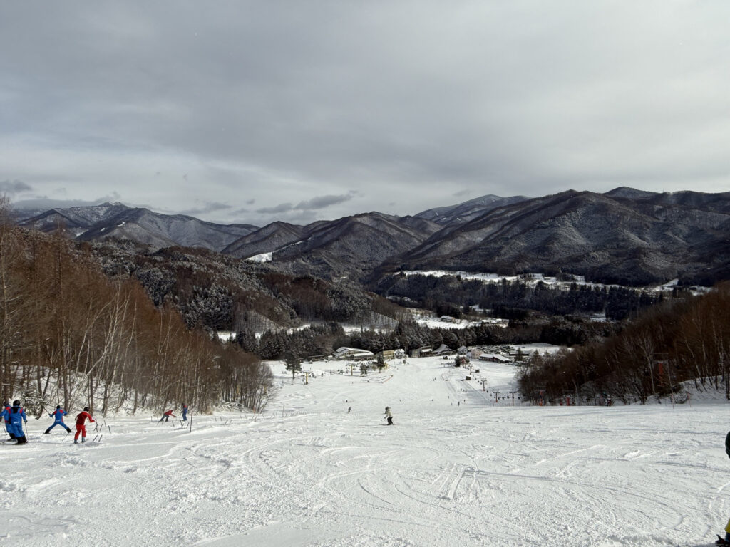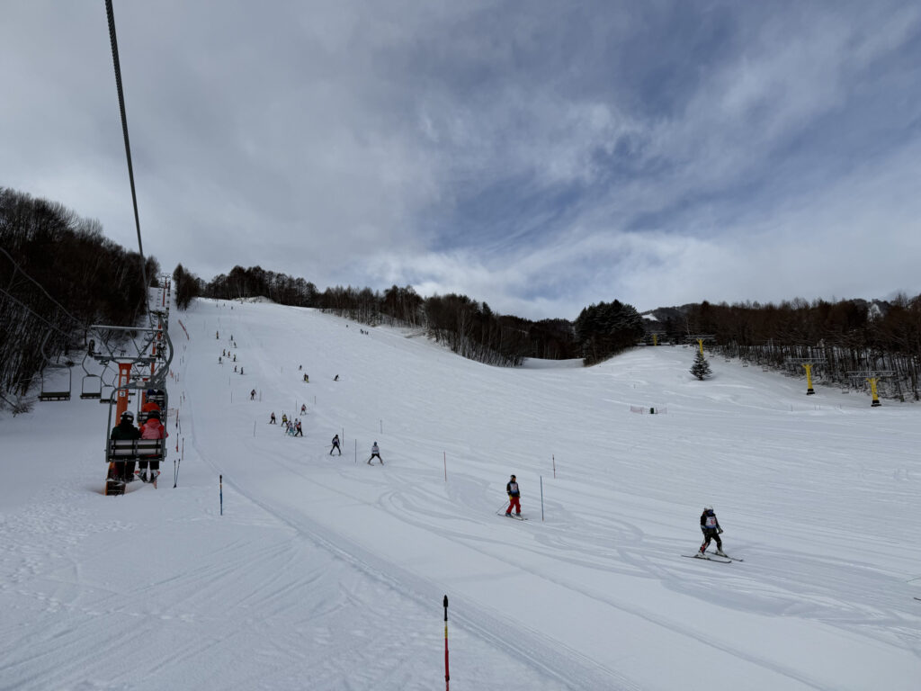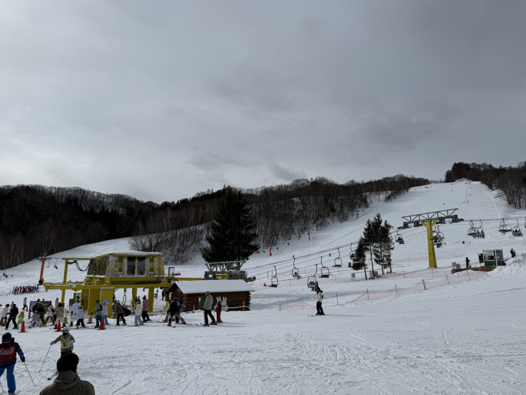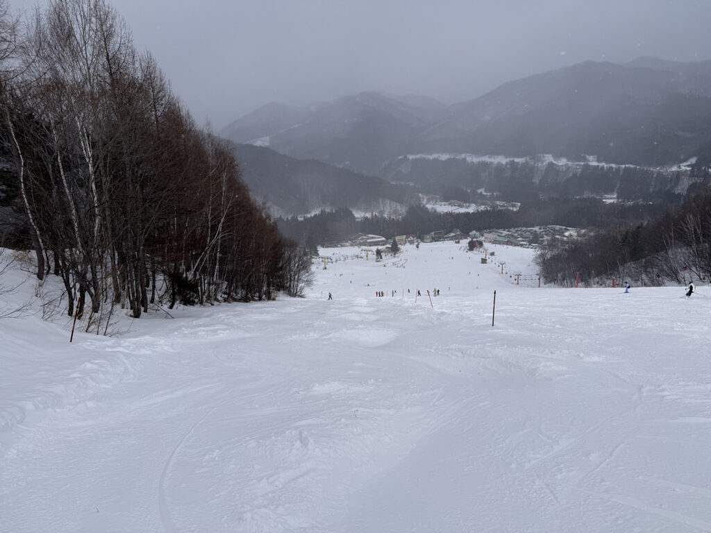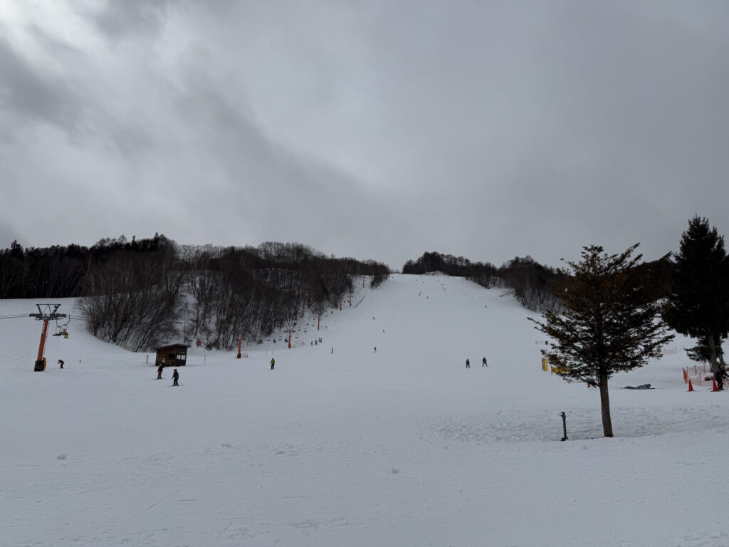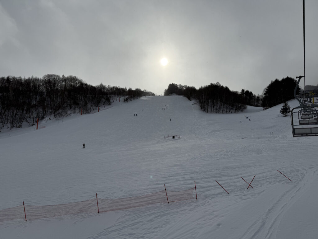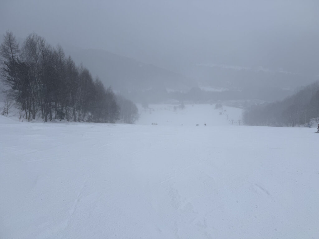 昼頃の様子です。日が隠れて、寒くなってきました。ゲレンデもサラサラとしたコンディションになってきました。