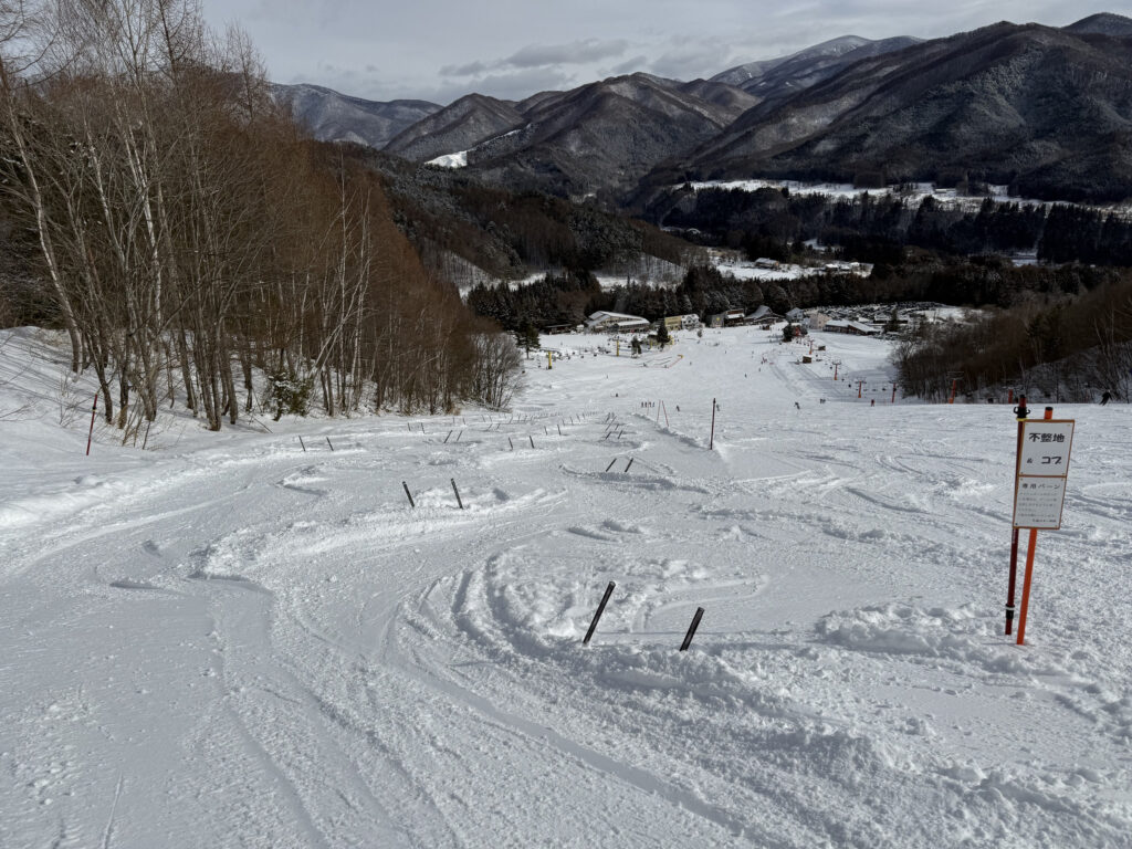 かえでコースの端には検定用にコブレーンが作られていました。メインのかえでコースは朝はとにかくコンディションが良く滑りやすいゲレンデでした。
