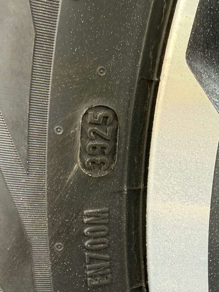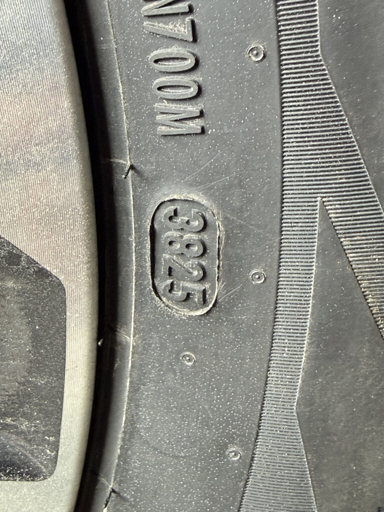 今回は2025年製だと分かっていたのですが、製造時期を見ると38週と39週の2組になっていました。1週間しか違わないので誤差です。だいたい2025年の9月の後半に製造されたタイヤですので、十分新しいです。