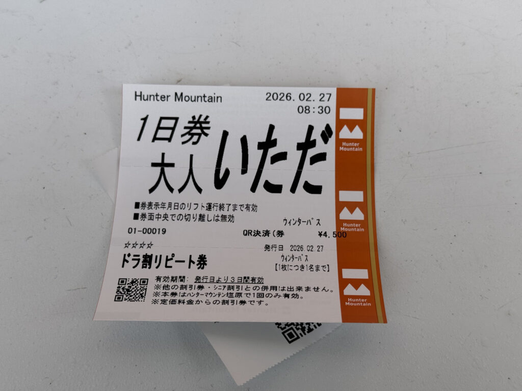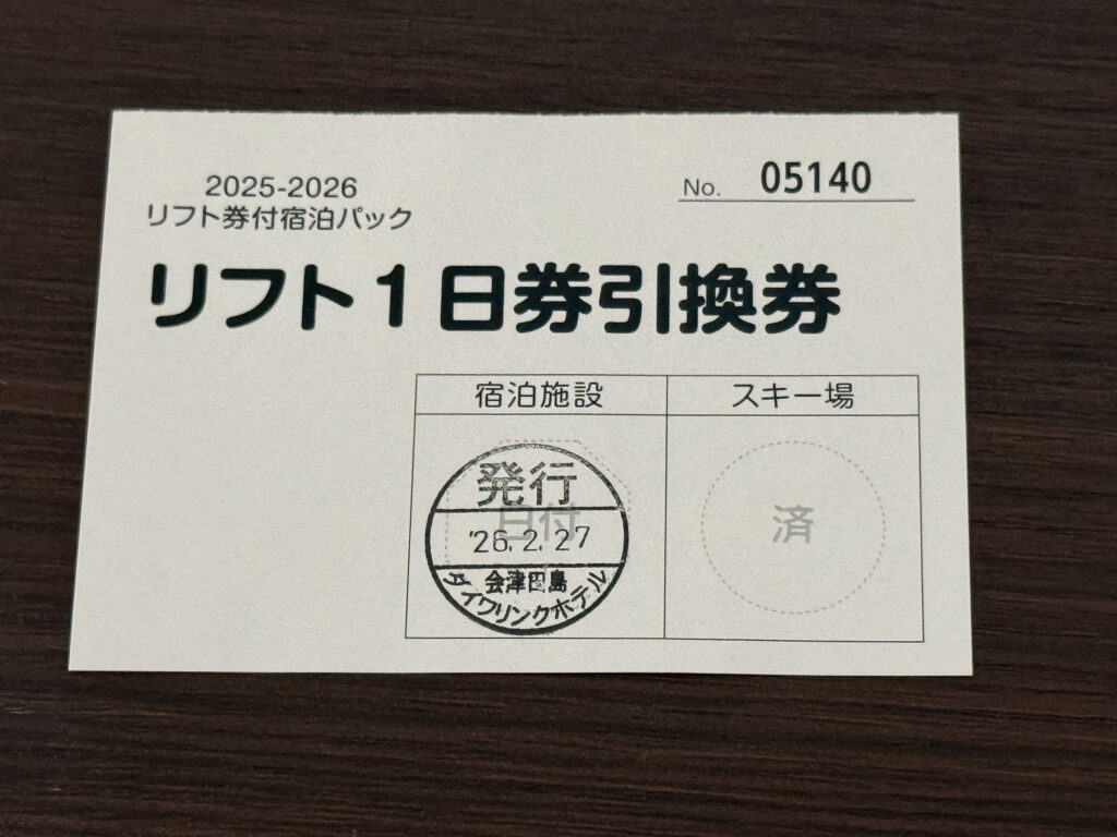今回も、リフト件プランで宿泊です。このチケットで南会津の4スキー場から選んで滑れます。直前で行き先変更も出来るのは意外に便利だと思います。