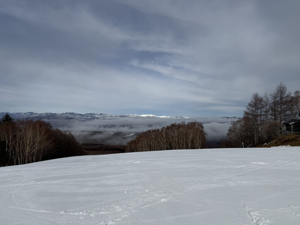 雲の多いコンディションでした。お陰で雪はよく滑りました。