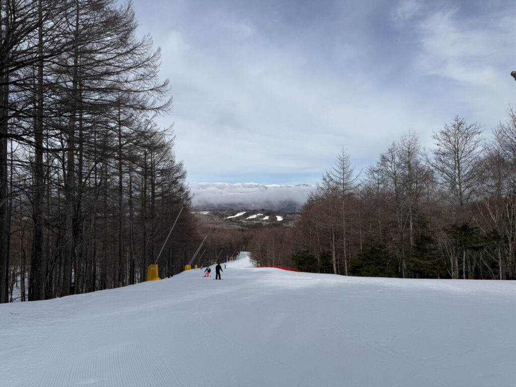 林間コース。こんな感じでゲレンデにはしっかり雪が残っており、整備もされて滑りやすいコンディションでした。この辺が流石のハンタマって感じです。