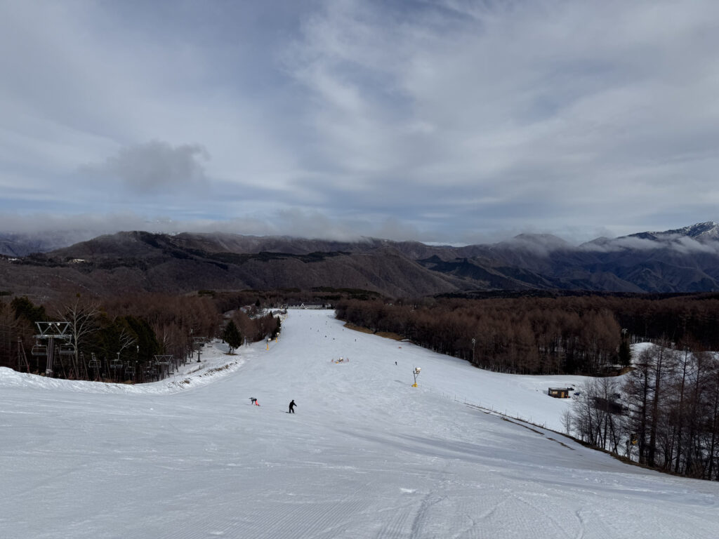 下部の緩斜面です。朝はこんな感じでまだ滑っている人は少なかったですが、徐々に人が増えてきました。