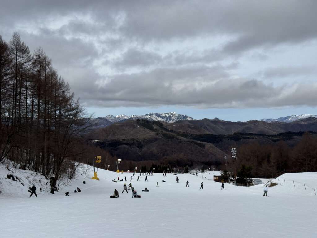 昼頃になると緩斜面はなかなかの賑わいでした。リフト待ちが出るほどではありませんが、ゲレンデでは多くの人が滑っていました。
