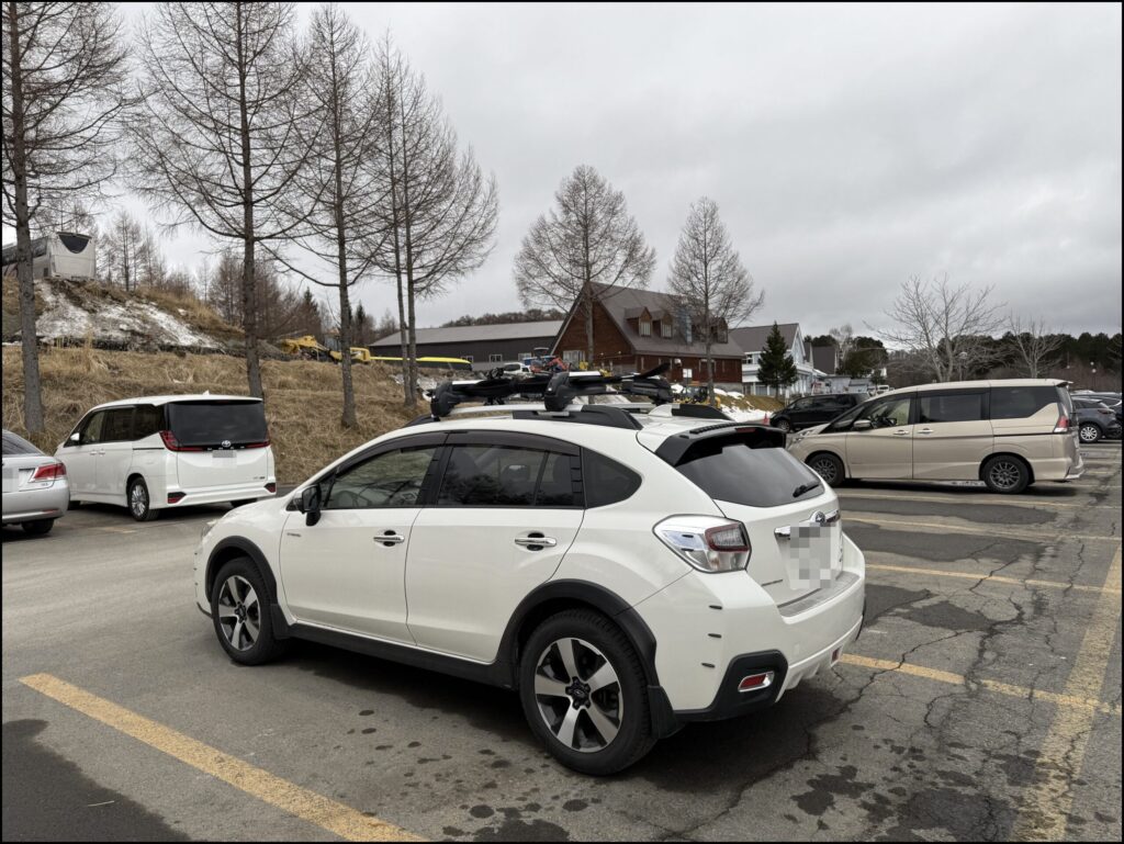 ハンタマ駐車場到着は8時ころです。気温は車外温計で6℃くらいだったと思います。温かいです。駐車位置は第3駐車場の真ん中あたり。第二駐車場が閉鎖されていたので、混雑具合の判断は難しいですが、平日でもやっぱり混んでるハンタマでした。駐車場は多少氷が残っている程度。平時地は駐車料金は無料ですが、誘導員さんが誘導してくれます。やっぱり有り難いです。