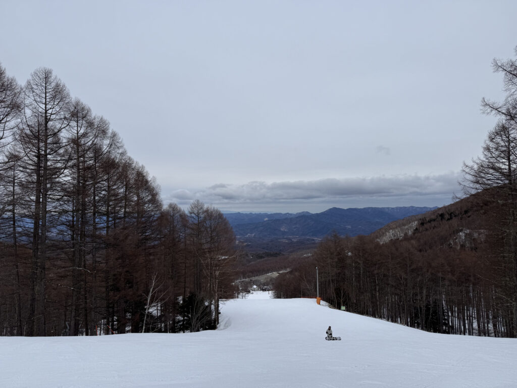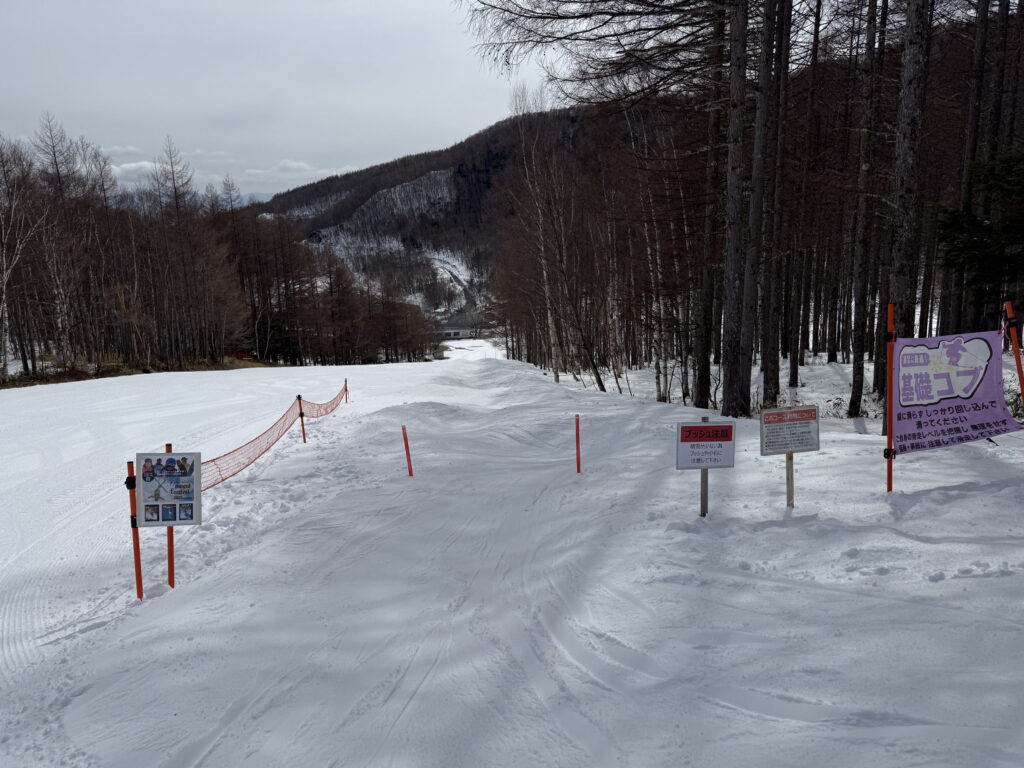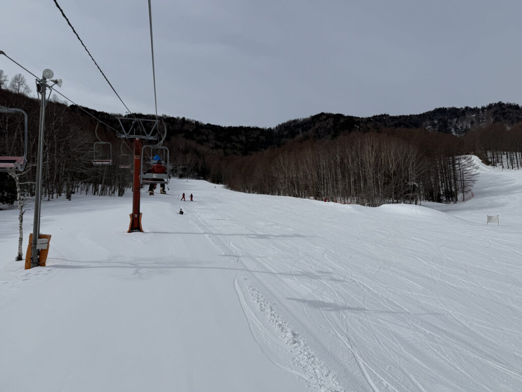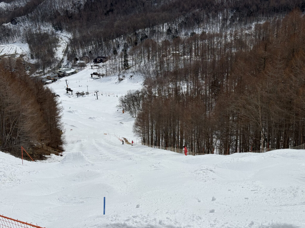 ゲレンデはしっかり整備された人工雪。気温さえ下がれば降雪できちゃう八千穂高原スキー場の本領発揮といった感じで、この時期とは思えない良好なコンディションでした。
