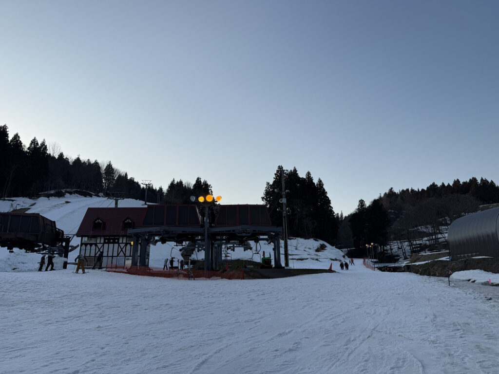 塩沢石打SAで休憩して、上越国際スキー場前駅、日帰りセンターアネックスへ向かいました。到着時刻は16:40頃です。連休中日ということで、いつもよりは車が多く残っていた印象です。帰る人も多い中、ナイターの準備をしている人もいつも以上に見受けられ、ナイターも盛況なのかなという感じがしました。