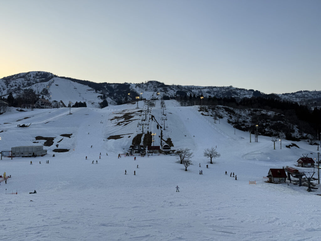 三連休ということで、なるべく混雜を避けて滑りたいところで、今回は中日ナイターから最終日にかけて滑ることにしました。連休最終日は意外に混雜しない法則を信じてのプランニングです。ナイターは基本いつでもそんなに混雜しないので、ここぞというときに滑るようにしています。