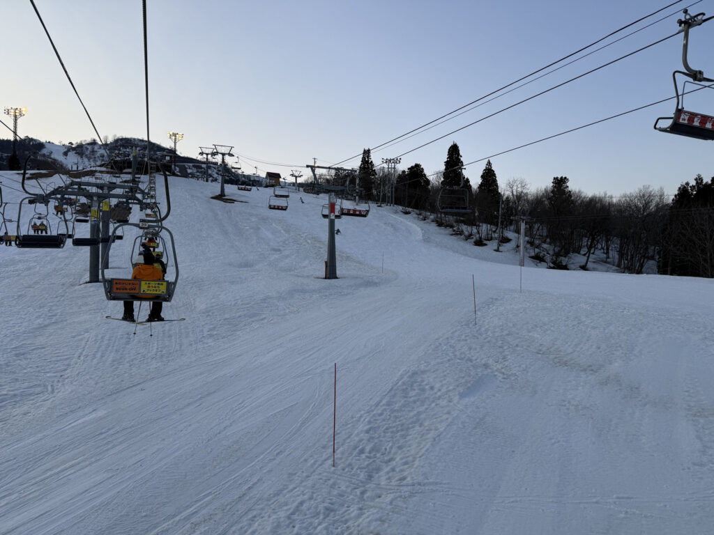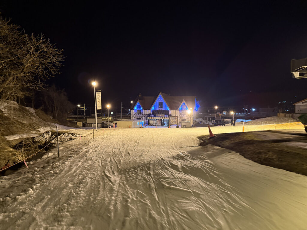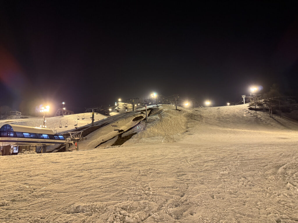 この日はまさに春の夜のナイターらしく、日中解けたシャーベットが凍ってボコボコという非常に厳しいコンディションではありましたが、寒くて速くて、やっぱりナイターは楽しいなと思いました。ゲレンデは苦行なんですけどね、なんかナイターの特別感は好きだなと再認識しました。
