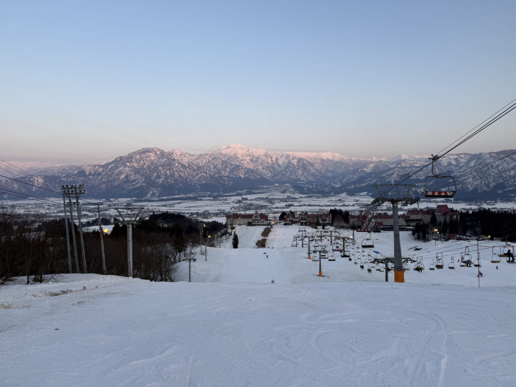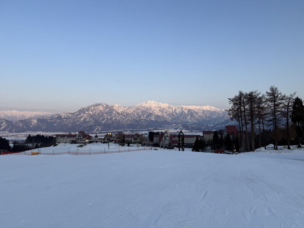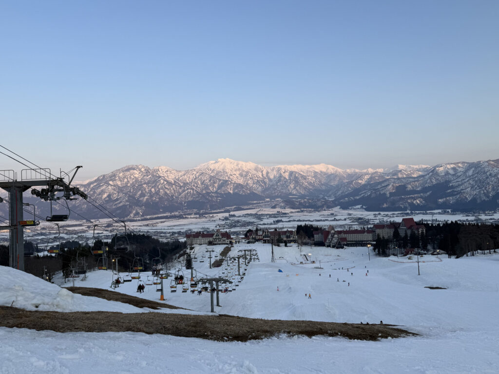 リフト降り場からの景色です。天気が良くて素晴らしい夕暮れの景色でした。