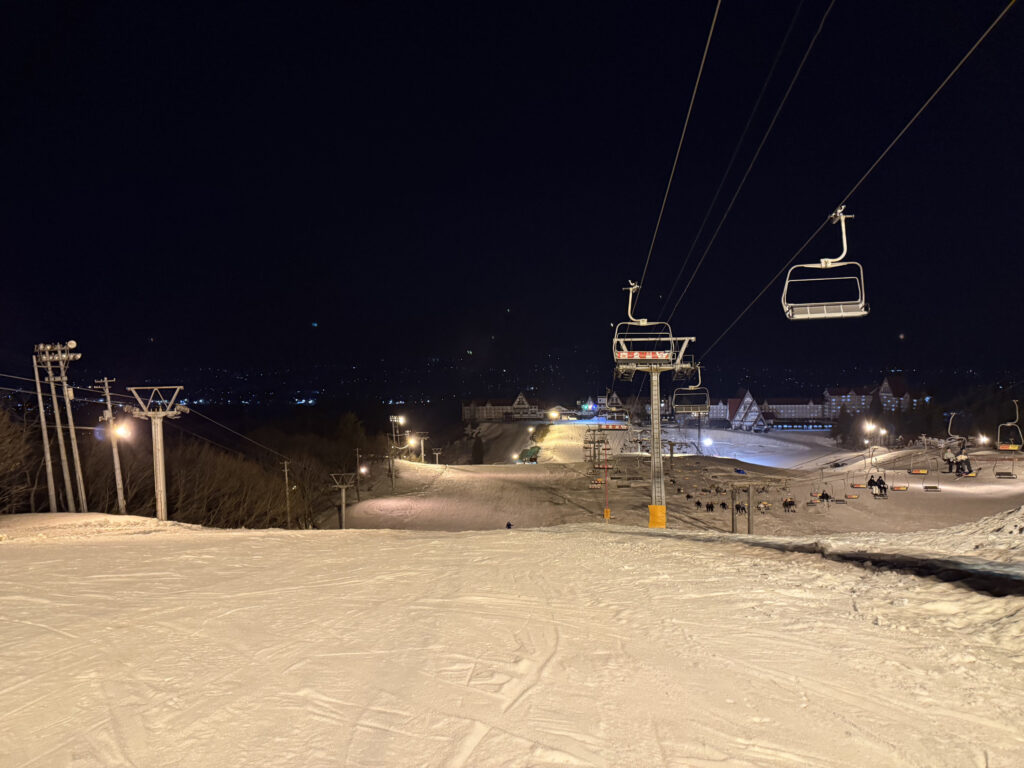 ナイターはやっぱり楽しかったです。春の夜のボコボコの凶悪なアイスバーンでしたが、そんなに混んでないし、気温低くて気持ちいいし、夜景は綺麗だし、ナイターの雰囲気は好きだなと改めて思いました。混んでる時期はナイターも良いです。リフト券も割安で助かります。