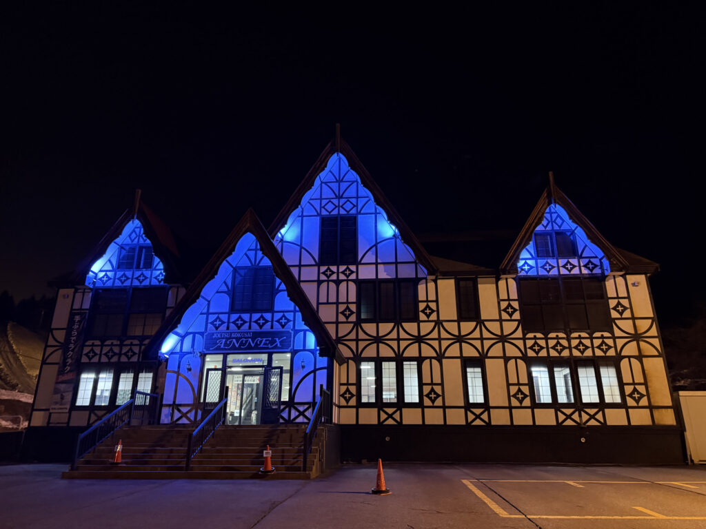 帰り際のアネックスの様子。ちょうどこの時、21時を回って、ゲレンデ方面で花火が上がるのが見えました。