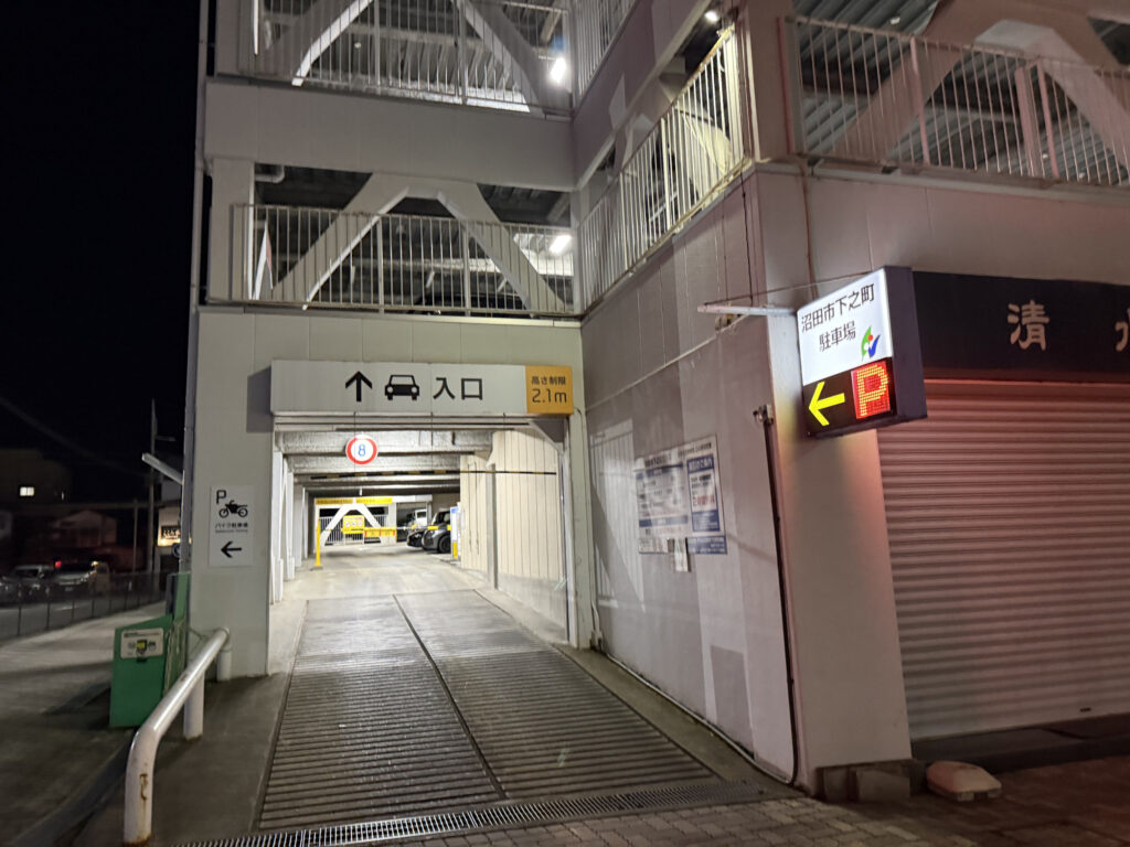 沼田のホテル到着は22時頃です。この時間にホテルに戻ったら、やっぱりと言いますか、案の定、駐車場が満車になっていました。そうなると、ホテルからちょっと離れた有料駐車場に行くことになります。ホテルからはちょっと歩きます。