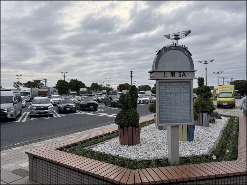 休憩は上里SAワンストップです。6時前に着いたのですが、GWらしく誘導員の方が立っていました。この時間なので、まだそこまで混んではいなかったのですが、言われてみれば多少車は多いかなという感じです。