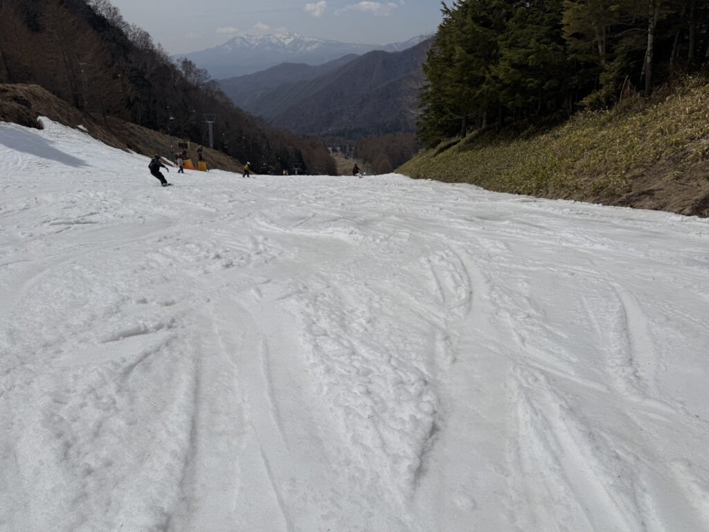 丸沼高原スキー場は雪だしが始まってGW終盤まで行きそうな気がしました。一方で余談は許さないかなとも思います。既にもう出せる雪が無さそうな気配もあって、今後の気温次第では難しいかもしれないなと感じました。