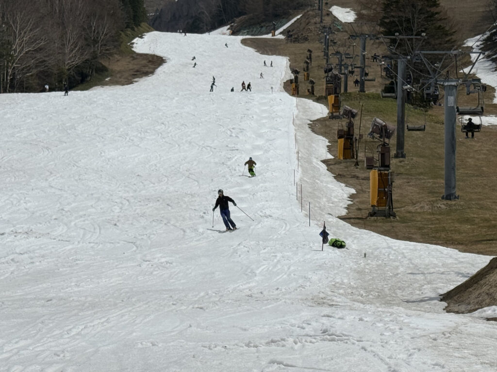 春になって高温傾向が続くゲレンデですが、GWに向けて、通常は営業しているスキー場も今年はギリギリになって突然クローズしているところが散見されます。そうなると残っているスキー場には人が集まって混雜する懸念がある一方で、シーズンアウトする人も増えるため、このバランスがどうなるかは気になるところです。