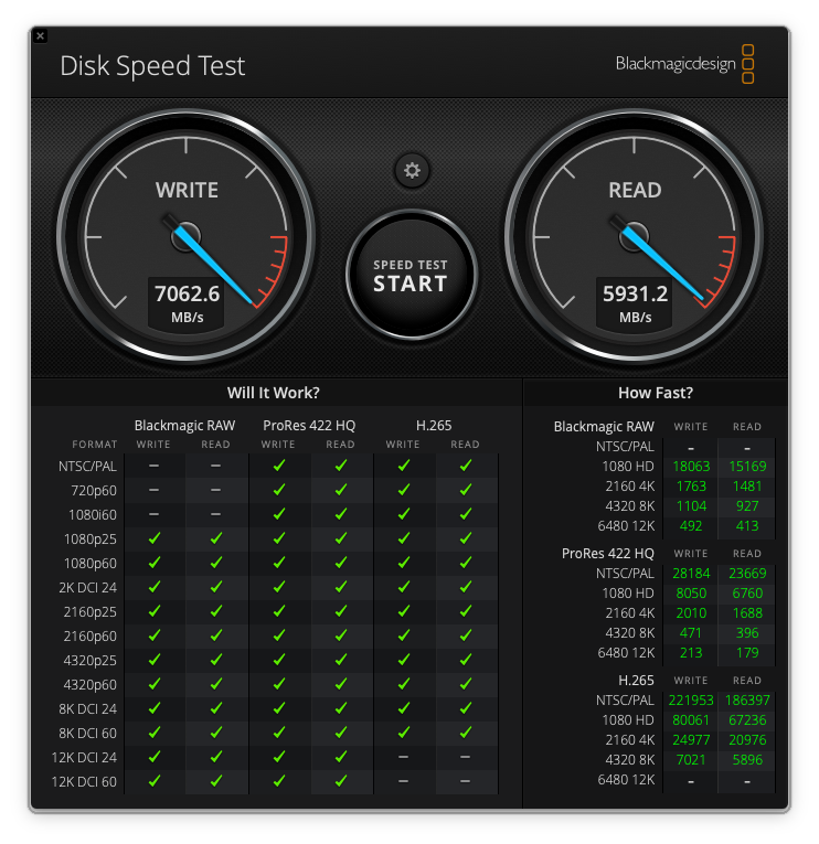 スピード振り切ってますが、Readで6GB/s、Writeで7GB/sです。これしれっと速いですよね…。M5チップは、とにかく性能が高いので、安心して使えると言って良いと思います。この安心感こそがM5 MacBook Airの強みかなと思います。
