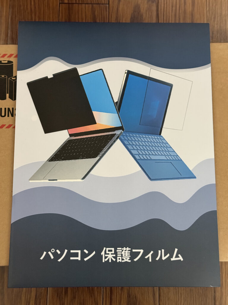 これが今回の目玉です。仕事で使うこともあるため、プライバシーフィルムは必須なんですが、今回は、粘着式の再貼付け可能なフィルムっていうのを選んでみました。